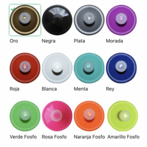 Amarillo Fosforecente, Azul Rey, Blanco, Menta, Morado, Naranja Fosforecente, Negro, Oro, Plata, Rosa Fosforecente, Verde Forforecente