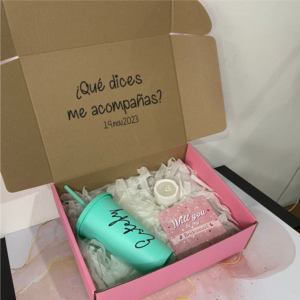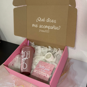 - Caja personalizada con nombre por fuera y mensaje interior 30*30*9.5