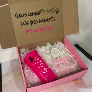 - Caja personalizada con nombre por fuera y mensaje interior 30*30*9.5
