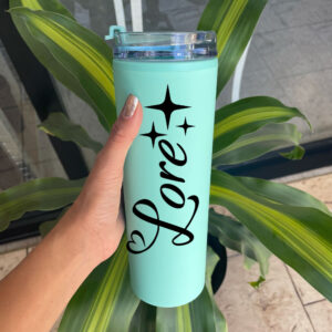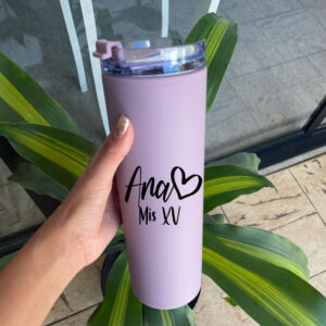 Skinny Big de acrílico con tapa hermética y popote, ideal para mantener tus bebidas calientes hasta 1 hora y frías hasta 4 horas. Personalízalo con tu tipografía y color favorito.