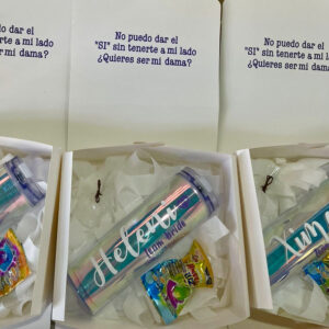 Haz que tu Team Bride se sienta especial con este exclusivo kit personalizado. Un detalle único para consentirlas y hacerlas parte de tu celebración.