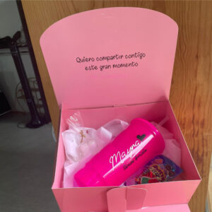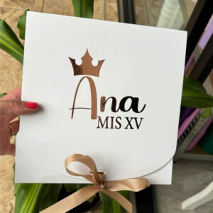 - Caja personalizada con nombre por fuera y mensaje interior 30*30*9.5