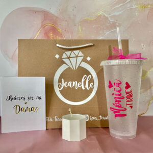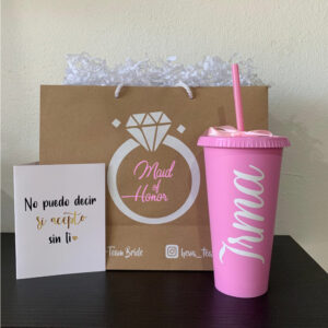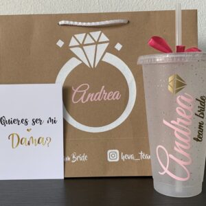 Colores disponibles de vaso: Rose Gold, Rosa Pastel, Menta, Lila, Negro, Transparente con Glitter, Negro, Azul Pastel, Verde Esmeralda.