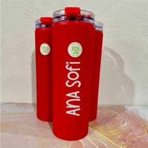 - Vaso skinny con tapa hermética antiderrames y popote. Guarda el frio 4 horas y calor 1 hora.